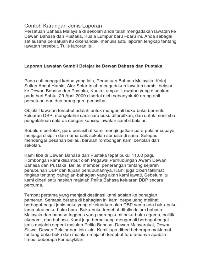 Contoh Karangan Laporan Aktiviti Persatuan Bahasa Melayu Upsr